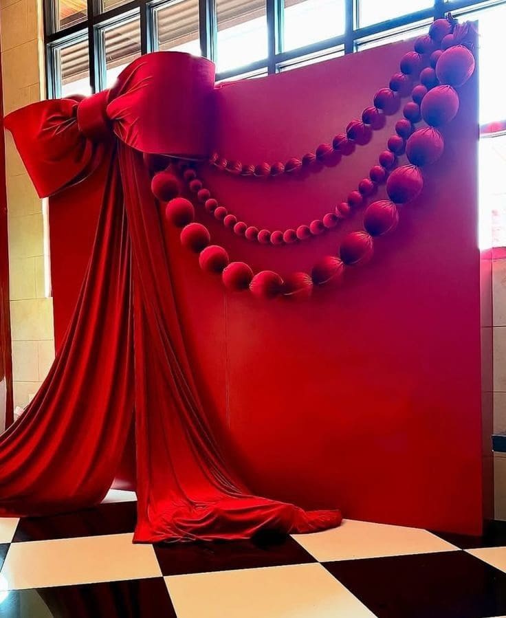 Размер баннера - 2.5х2.5, крупный бант из текстиля, декоративные крупные бусины