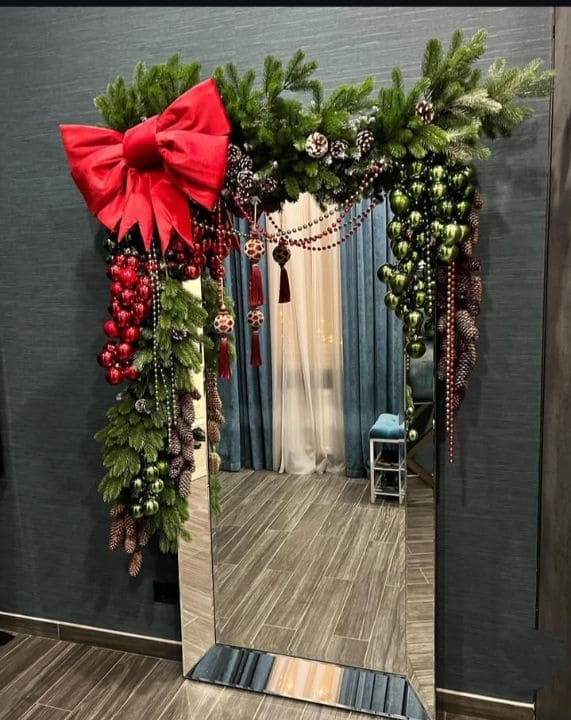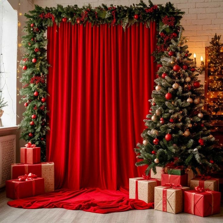 Размер - 3х2.5м, две колонны, елка с украшениями, насыпные свечи и гипсовые головы
