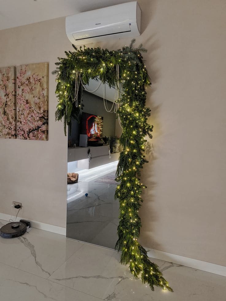 Каркас D-2.5м, 6 елок, декор искусственным снегом и фонариками